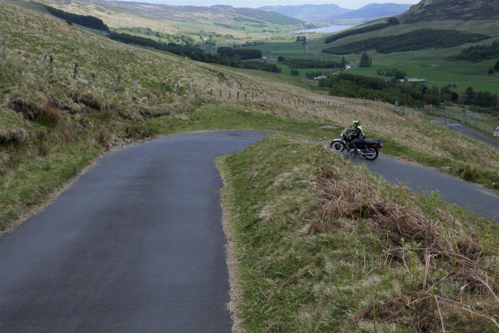 Back to motorcycling, it was glorious, just bimbling along in this incredible early summer weather, catching flies by the thousand. BMW's were put away to rest on Sunday and Fi got her Norton out after taking a half day on the Monday to enjoy what no doubt will be the last of the heat! Fi's Norton threw a wobbly at Glenalmond so we stopped and swapped bikes and I nursed the errant Commando back home and dragged out the Triumph, Fi decided she wasn't giving me my Norton back so with me Triumph mounted we set off again for a glorious afternoon, empty roads and great scenery and all on our doorstep, braw! The yellow Norton seems to have a carb issue and will be easily sorted.....hopefully.